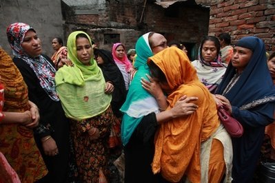 在孟加拉國首都達(dá)卡,火災(zāi)遇難者家屬失聲痛哭